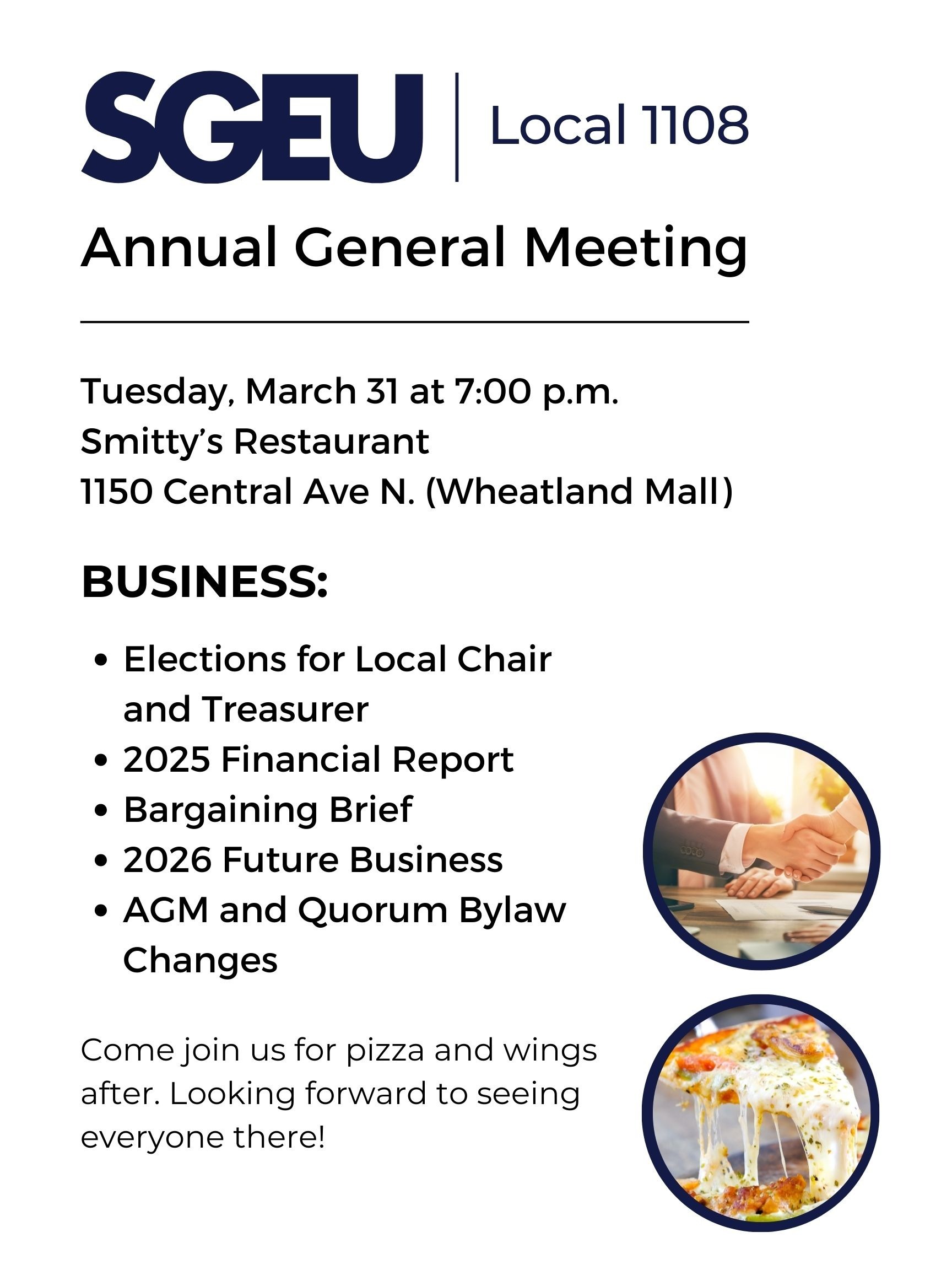 Come join us for pizza and wings