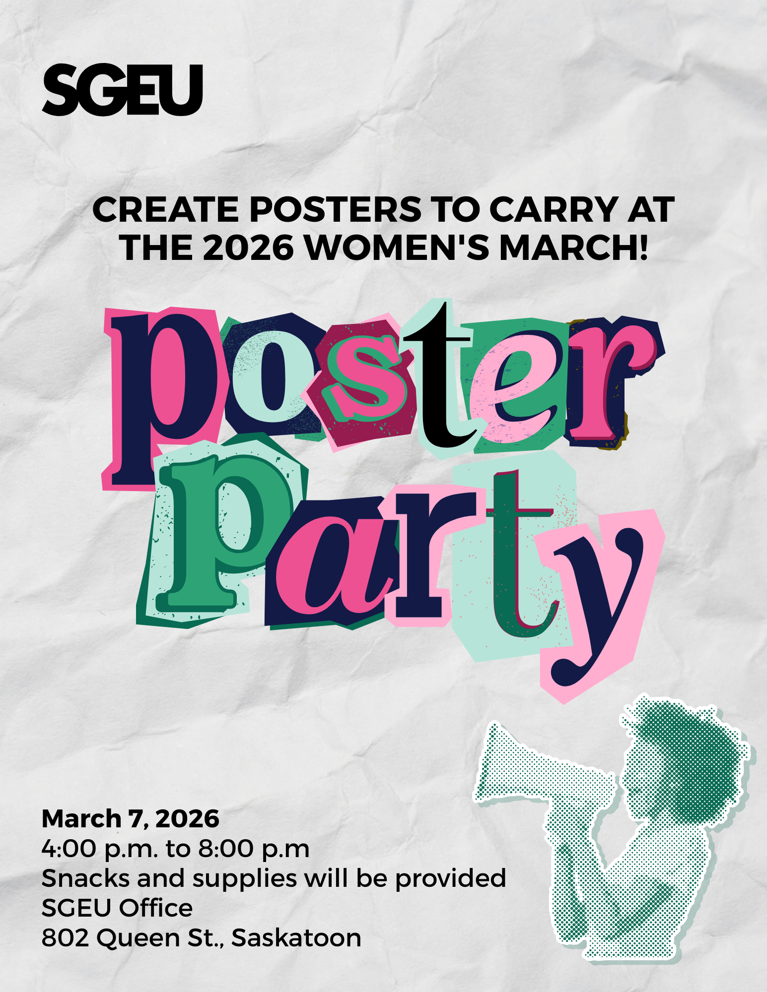 The SGEU Women’s Committee is hosting a Women’s March poster-making party on March 7 for union members and the wider community to create signs and posters for use at the 2026 Women’s March.